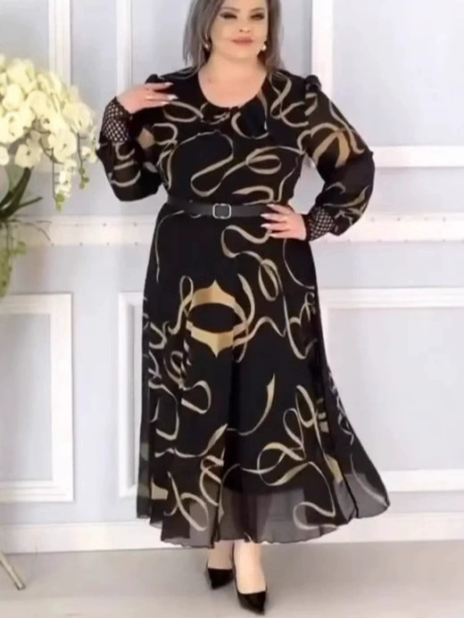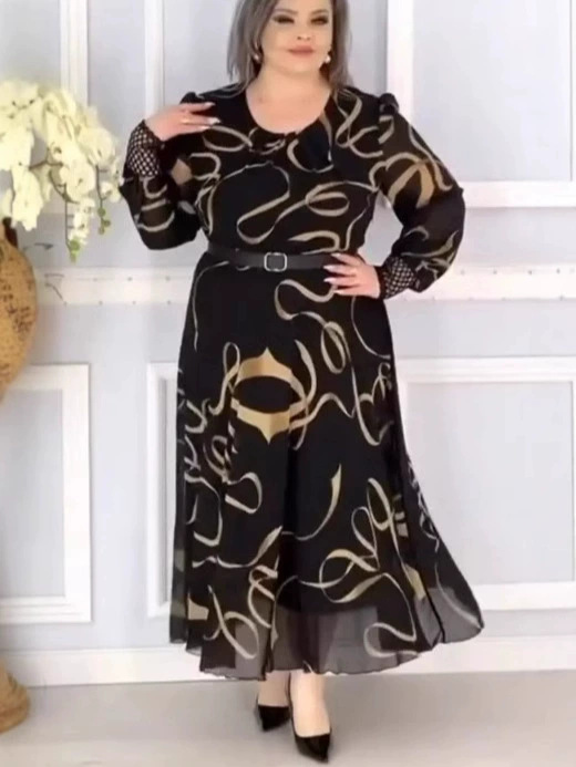 Ice Silk Western Style Youthful-looking Ethnic Style Plus Size Women's Printed Short Sleeve Dress