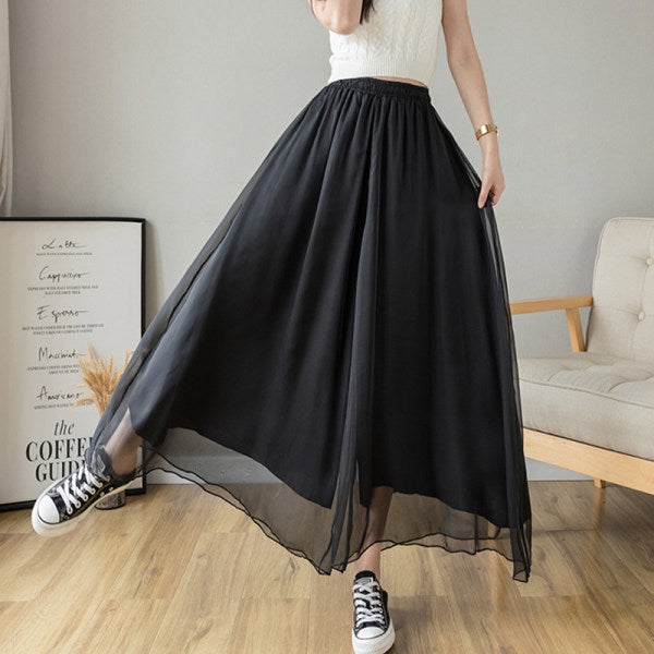Temperament Plus Size Mercerized Chiffon Lining Wide-leg Skort