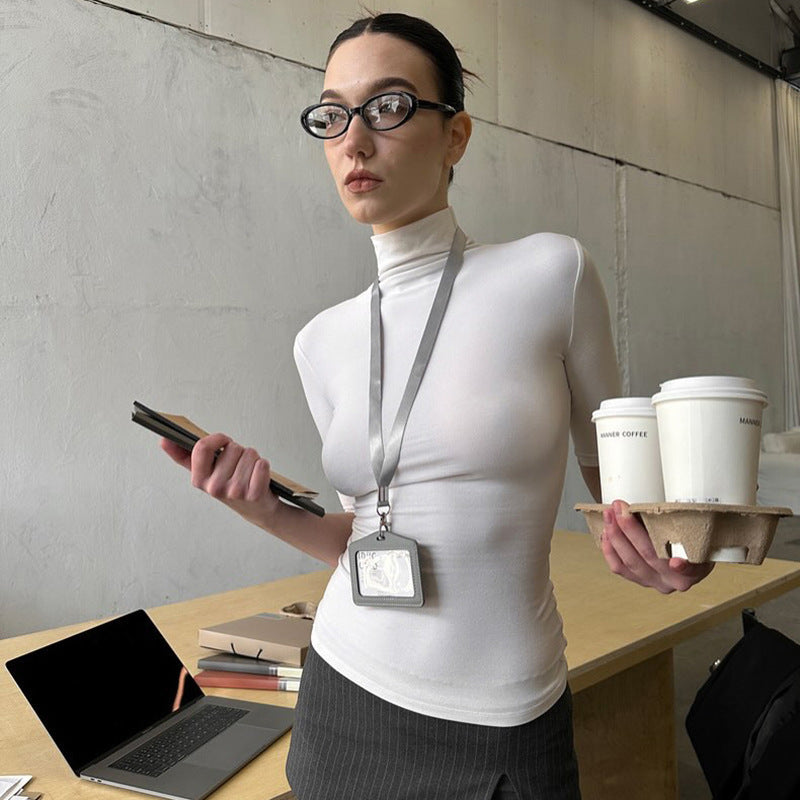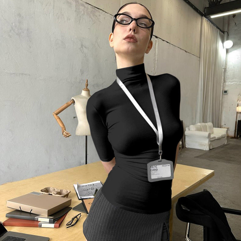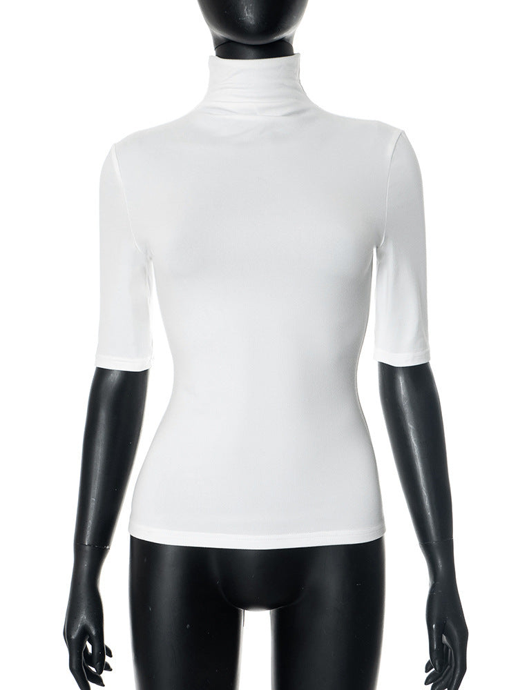 Women's Solid Color Turtleneck Half Sleeve Close-fitting And Slim-fitting Top